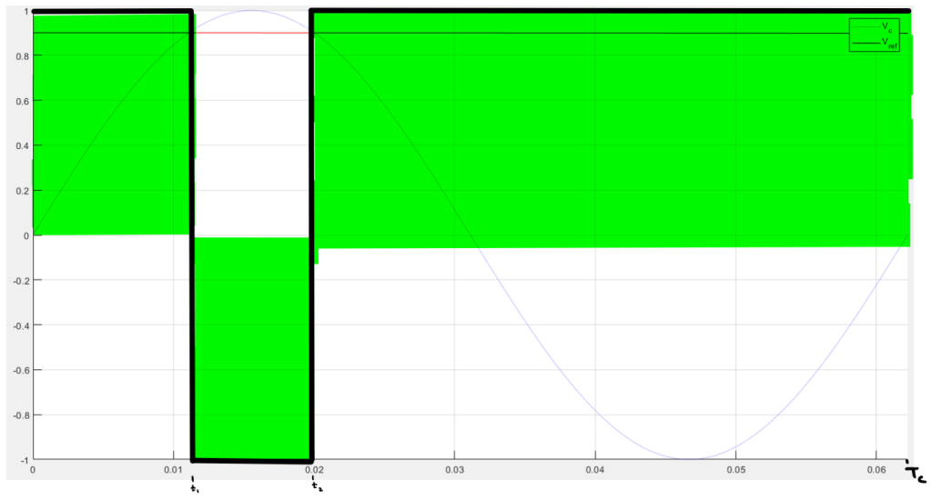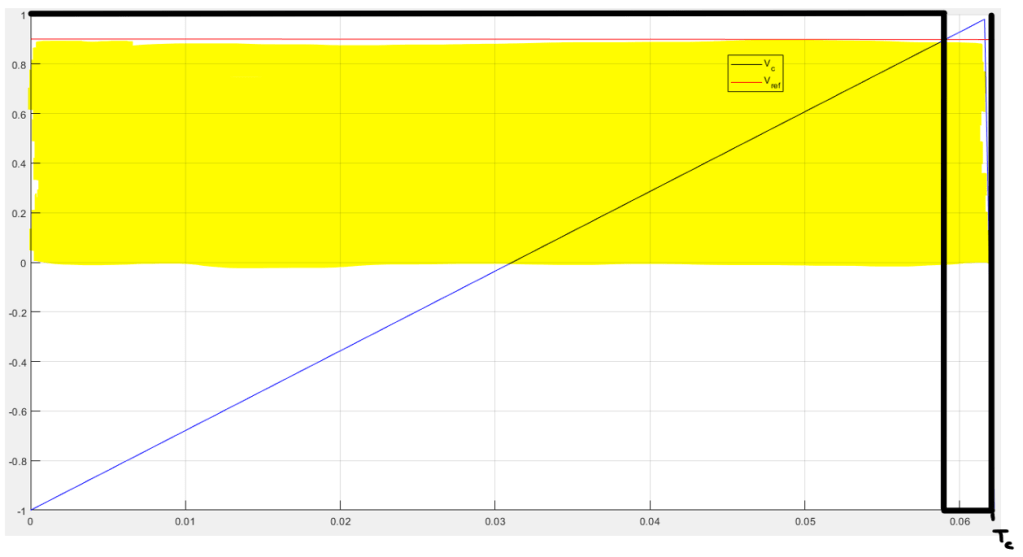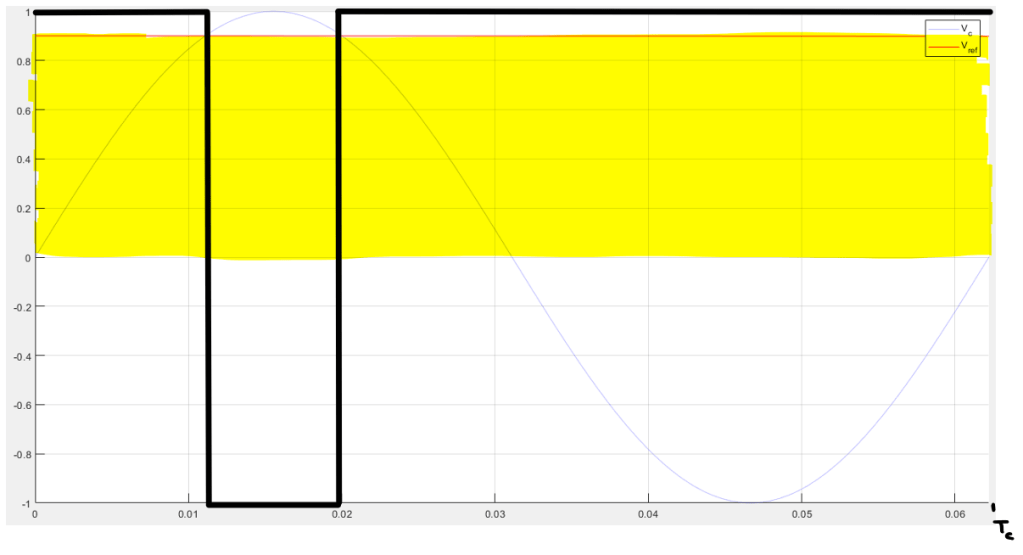 The Yellow highlighted region is the total Vref area during one carrier cycle. Then the average Vref value during this cycle is given by