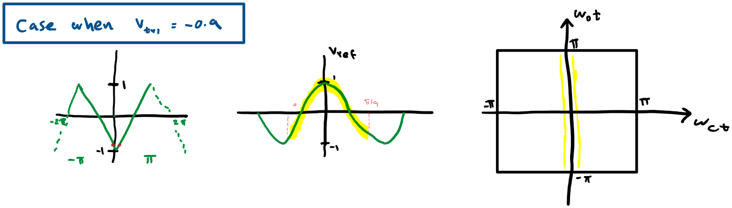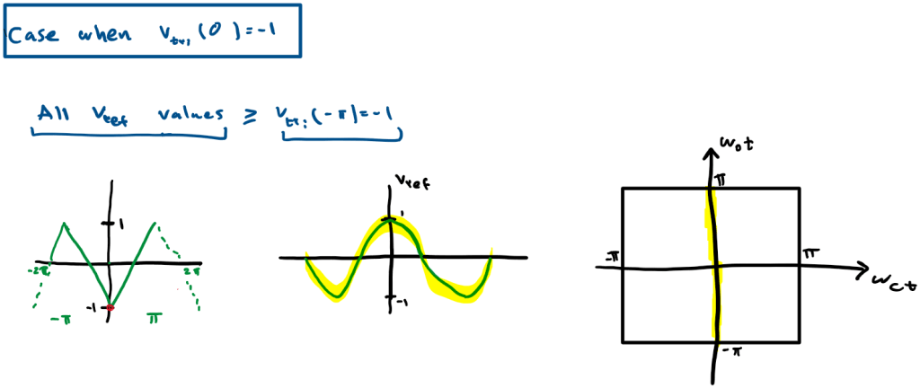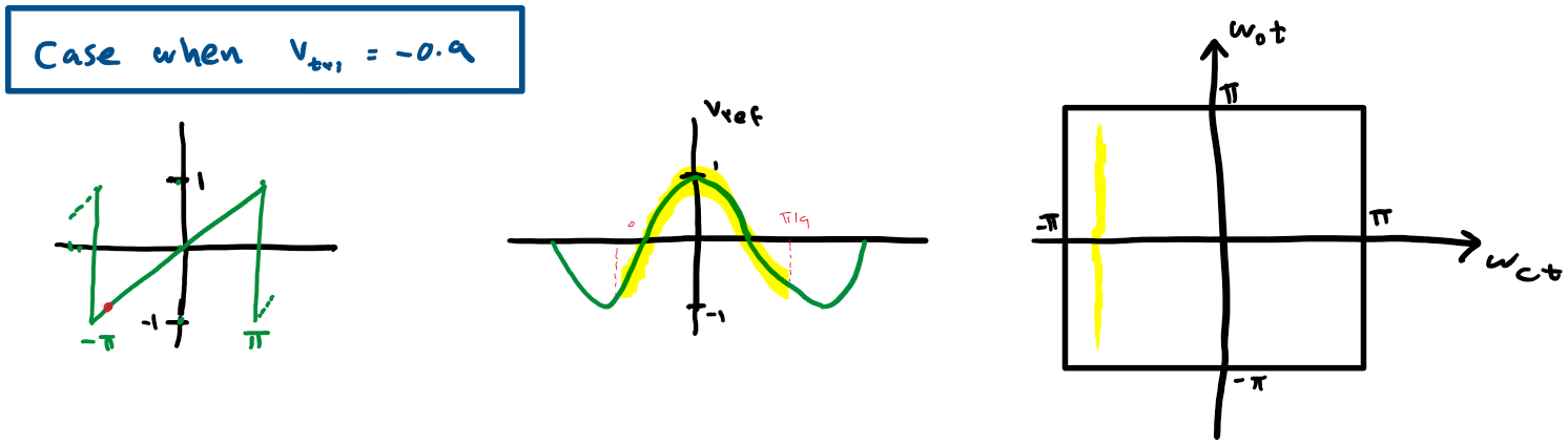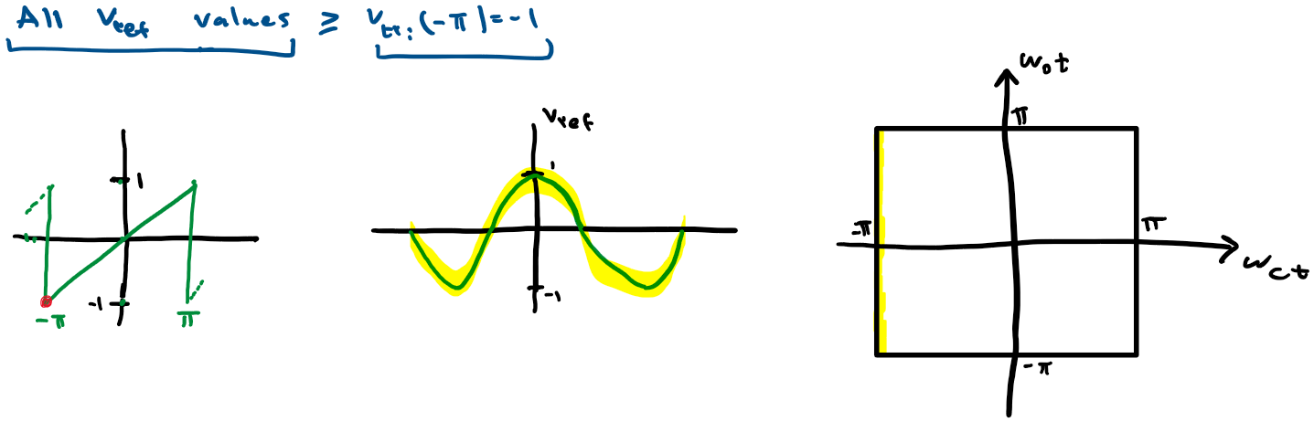 lets take a saw-tooth and consider the point where we are at x=-π and identify all points in y where Vref >= Vst