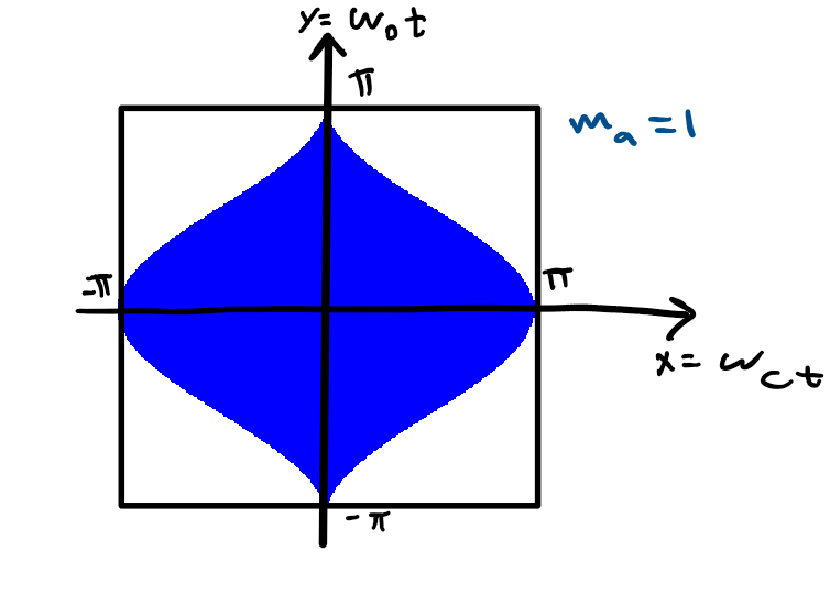 Looking at the Unit cell we observe that as y goes from -π to π, x goes from -π to πmacos(y).